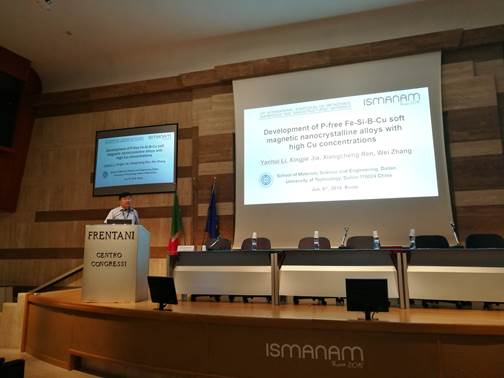 本人参加的是纳米结构材料分会,并作了题为《Development of P-free Fe-Si-B-Cu soft magnetic nanocrystalline alloys with high Cu concentrations》的研究报告,内容受到了参会者的关注,并进行了有意义的讨论。